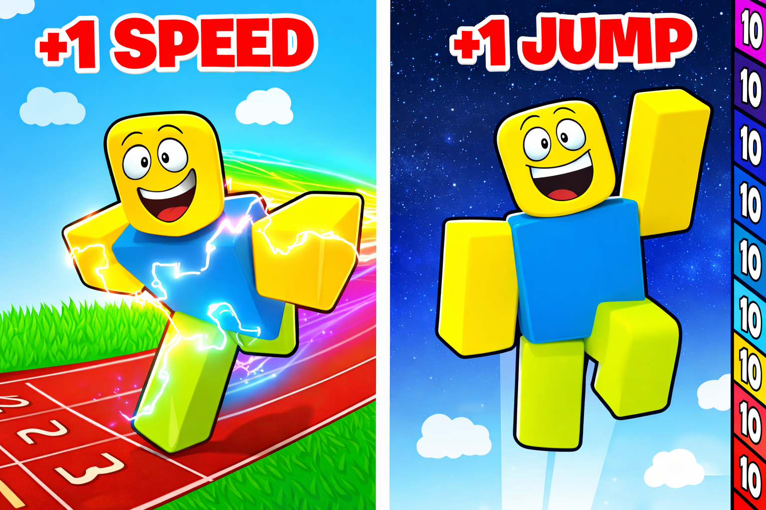 Play +1 Speed And +1 Jump Every Second and get faster every second, complete obbies, unlock areas, and win big rewards!