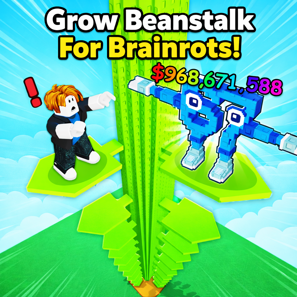 Grow your beanstalk, collect brainrots, earn cash, and escape the giant in this fun idle survival game, Grow Beanstalk For Brainrots!.